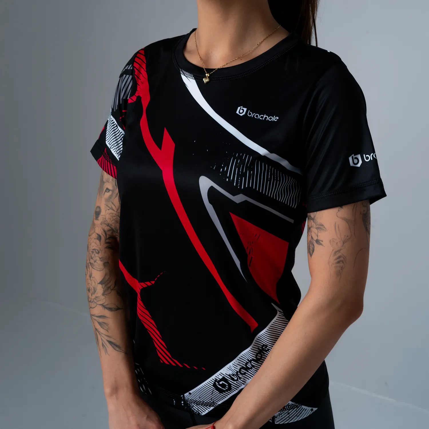 Czarna koszulka damska do fitnessu Damage od Brachole.pl wykonana jest z lekkiego i przewiewnego materiału 100% poliestru, o gramaturze 140g/m2, zapewnia komfort i swobodę ruchów. Krój fit oraz krótki rękaw sprawiają, że koszulka świetnie dopasowuje się do sylwetki. Technologia "Skin Fit", krój specjalny, oparty na mapie ciała i z zastosowaniem panelowej struktury materiału, zapewnia doskonałe dopasowanie, nieograniczoną swobodę ruchów, zwiększoną odporność na uszkodzenia i deformacje. Poliestrowe włókna, z których została wykonana koszulka, są również odporne na promieniowanie UV. Dzięki temu z łatwością możesz ćwiczyć na słońcu, nie martwiąc się o swój komfort czy zdrowie skóry. Jej design sprawi, że będziesz wyglądać modnie i zgrabnie podczas każdej aktywności fizycznej. Ta wyjątkowa koszulka będzie idealnym dodatkiem do Twojej kolekcji.
